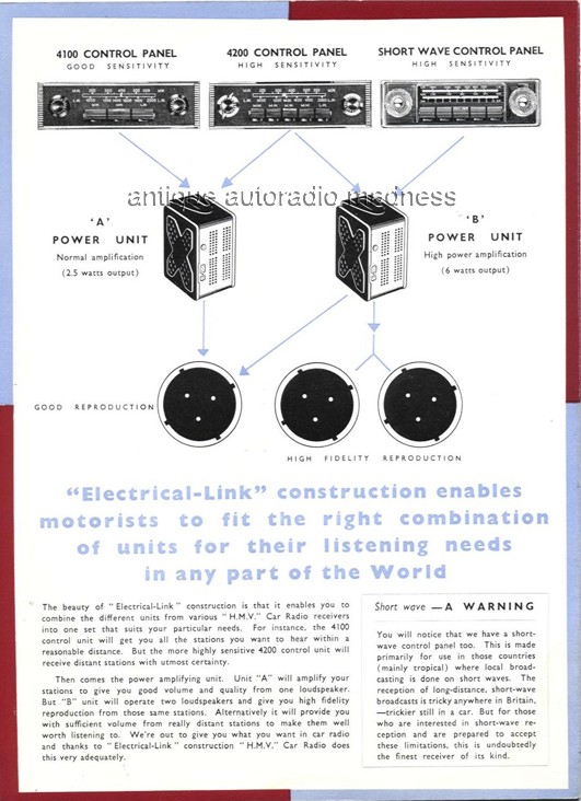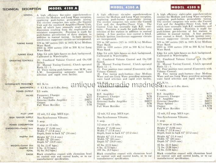 Smiths Radiomobile (HMV car radio) - models 4100A - 4200A & B + combination