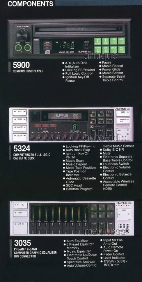 ALPINE vintage car radios: 7142E, 7141E, 7148E, 7152E, 7151E, 7125N, 5900, 5324, 3035