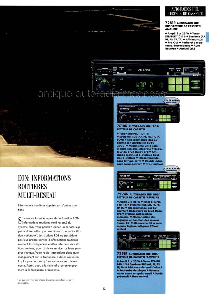 ALPINE old school car stereo: 7619R, 7281R, 7618R, 7294R, 7291R