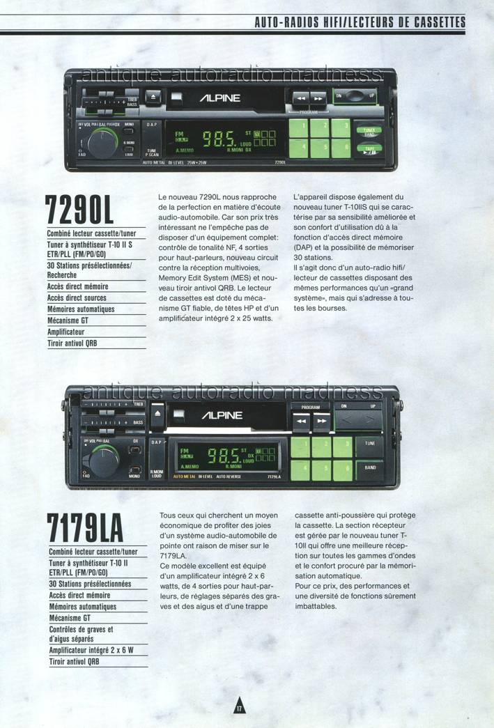 ALPINE vintage car radios: 7288L, 7288MM, 7289L, 7292L, 7290L, 7179LA