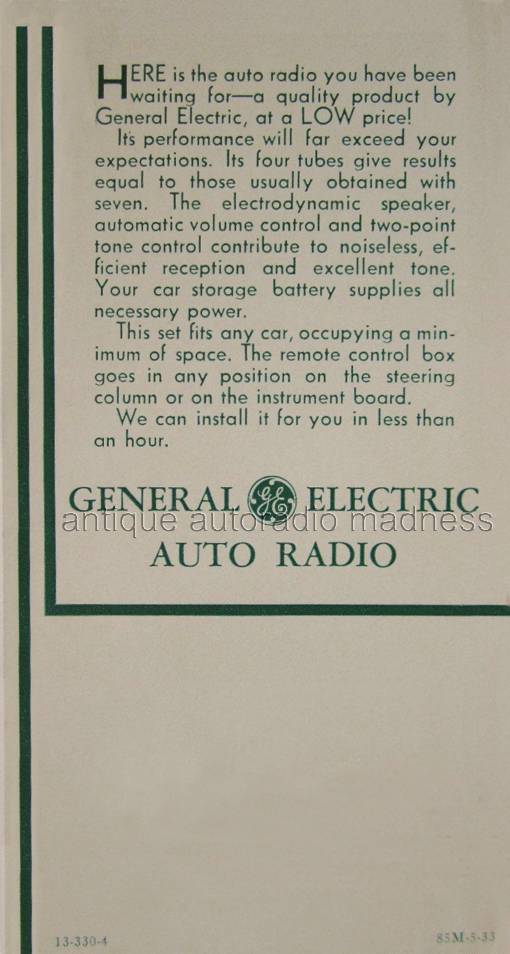 Motorola est bien engagé dans la course avec les nouveaux autoradios Models 44, 66 et 77, en supplément des Models 88 et 61 annoncés en 1932. Le fameux autoradio Motorola à commande type aviation fait l’objet de toutes les attentions.
